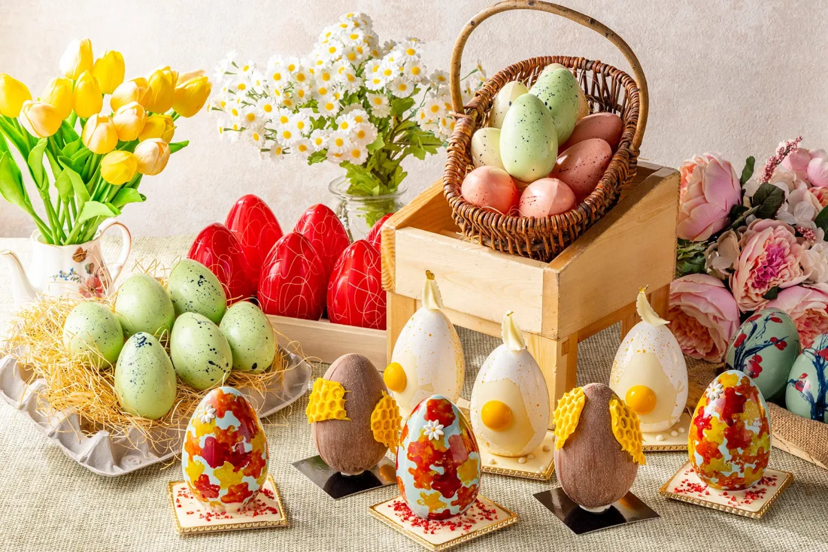 イースターはキリスト教の復活祭で、クリスマスとともに特に重要な日とされています。欧米ではこの時期、カラフルなイースターエッグやバニーが登場し、春の訪れを楽しむ風習があります。ヒルトン東京では、エグゼクティブ・ペストリーシェフのラティーシュ・ナイヤーが手掛ける、モダンなアートを思わせるチョコレートが魅力的です。