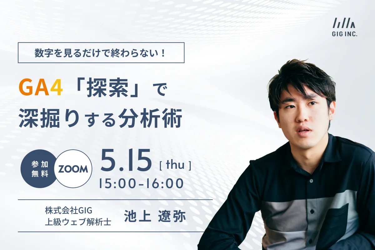 この度、2025年5月15日(木)にオンラインにて、GA4の探索機能に特化した無償ウェビナーを実施します。このウェビナーでは、GA4の探索機能を使用して深層的な分析を行う方法を学び、自らデータの裏に潜む真実に迫る技術を習得していただけます。