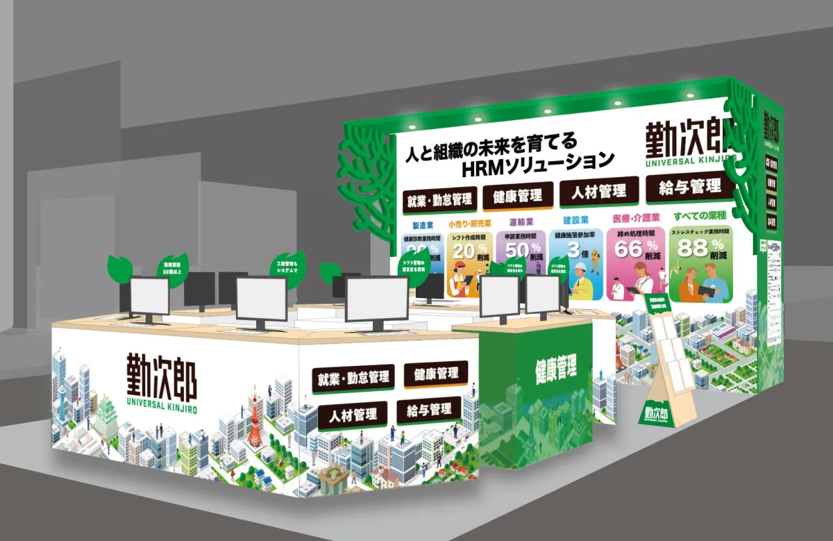 今回のブースでは、「就業・勤怠管理」や「健康管理」システムに加え、7月にリリースされた新製品『Universal 勤次郎人材管理』も登場します。来場者は、実際の画面を通じて、新たな人材管理業務支援ソリューションを確認できます。