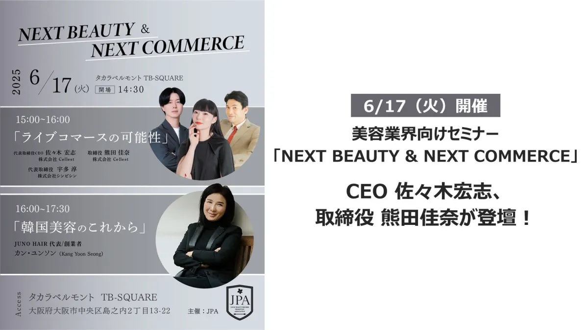 2025年6月17日(火)、大阪市で美容業界向けの注目のセミナー『NEXT BEAUTY & NEXT COMMERCE』が開催されます。このイベントには、株式会社CellestのCEOである佐々木宏志氏と取締役の熊田佳奈氏が登壇し、迫りくるライブコマースの未来について講演を行います。
