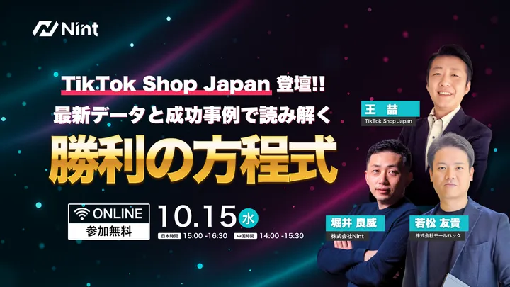 株式会社Nintは、2025年10月15日、EC事業者やブランド・メーカー、そして小売店の担当者を対象に、オンラインセミナー「TikTok Shop Japan登壇!最新データと成功事例で読み解く勝利の方程式」を実施します。このセミナーでは、TikTok Shop JapanのCategory Managerである王 喆氏をはじめ、モールハックの副社長若松友貴氏、そしてNintの経営戦略室から堀井良威が登壇します。