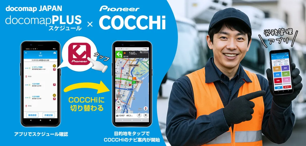 東京都港区に本社を置く株式会社ドコマップジャパンが、パイオニア株式会社のスマートフォン向けカーナビアプリ『COCCHi』と、自社の車両位置情報管理サービス『DoCoMAP』との連携を2023年5月19日に発表しました。この連携により、運転手は事前に登録されたスケジュール情報を簡単にナビゲーションとして利用できるようになります。