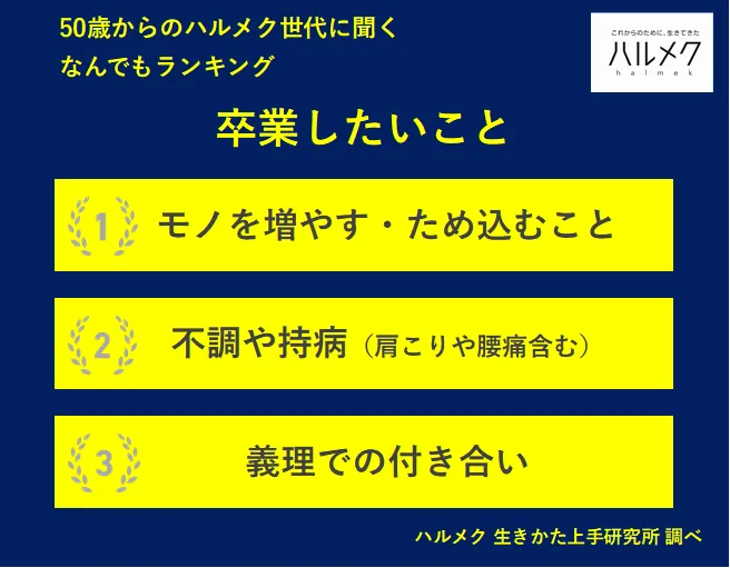 最近、50歳以上の女性を対象にした調査で、「卒業したいこと」が明らかになりました。この調査は、販売部数No.1の雑誌「ハルメク」を展開する「ハルメク 生きかた上手研究所」が実施したもので、524名の女性から得られたデータを元にしています。