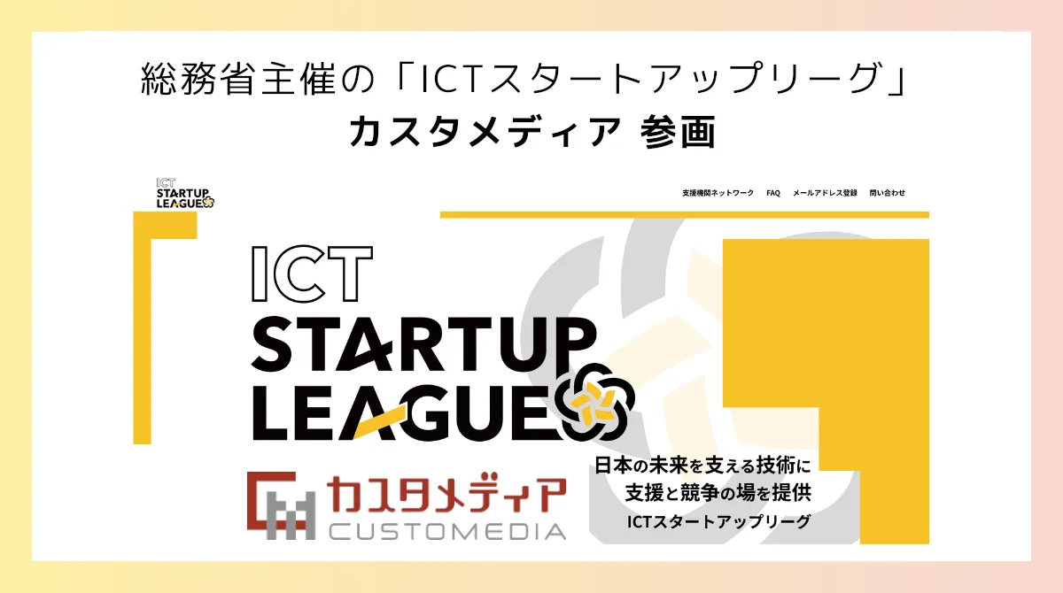 株式会社カスタメディアが、総務省主催の「ICTスタートアップリーグ」にパートナーとして参画しました。このリーグは、起業やスタートアップを支援するためのプログラムです。日本のICT(情報通信技術)分野における革命を促進することを目指しており、参加するスタートアップが競争しながら成長する場を提供します。