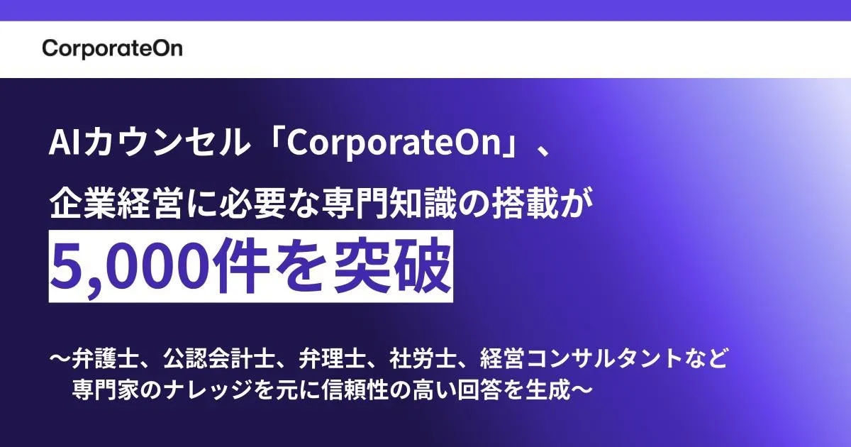 株式会社LegalOn Technologies(以下、LegalOn)が提供するAIカウンセル「CorporateOn」が、驚異の5,000件を超える専門知識を搭載したことが話題となっています。これは、企業経営を支援する上で非常に重要なステップといえるでしょう。