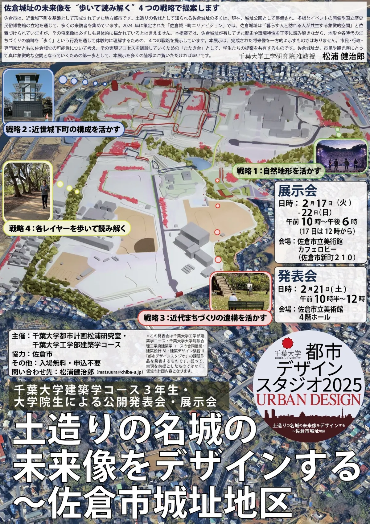 この提案は、単なる一方的な発表ではなく、市民、行政、専門家が集い、佐倉城址の未来像を共に議論する場とすることが狙いです。発表会と展示会は以下の要領で開催されます。