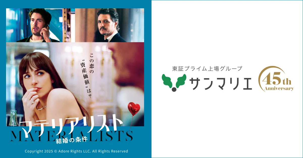 結婚相談所サンマリエが、映画『マテリアリスト 結婚の条件』と異色のコラボレーションを発表しました。この映画は2026年5月29日(金)に公開され、現代の結婚観を揺るがす新しいロマンティックラブストーリーとなっています。サンマリエは創業45周年を迎えるにあたり、映画のテーマである「結婚の条件」を通して、より多くの人々に幸せな結婚を支援することを目指しています。