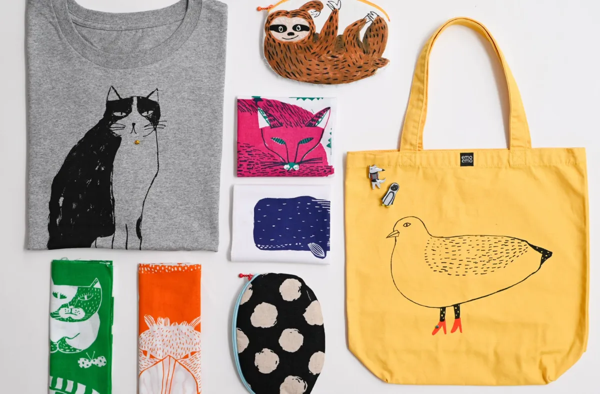 emoemoは、画家・神谷可奈子さんがデザインとプロデュースを手がけるブランドです。彼女の作品は、動物たちのユニークな表情を巧みに表現したテキスタイルであり、北欧風の色使いが特徴です。そのため、特に女性からの支持が高く、日常生活に潤いをもたらすアイテムとして多くのファンを持っています。どの作品も、シンプルながらも温もりを感じさせるデザインが魅力です。
