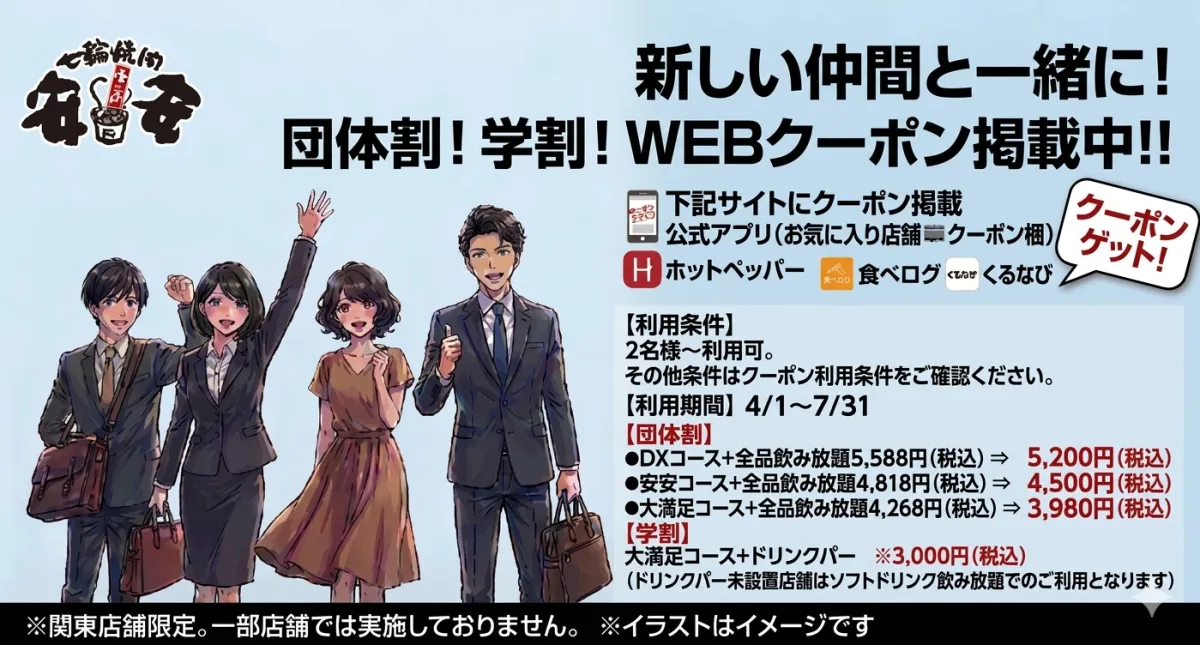 新生活を応援する七輪焼肉 安安のキャンペーン