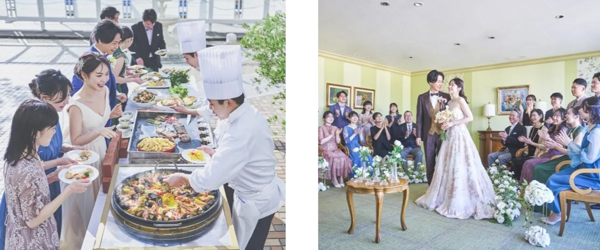 コロナ禍以降、ブライダル市場では少人数での披露宴が増え、60名以下の披露宴が15%を超えるシェアを持つようになりました。このような流れを受けて、結婚式においては、形式張った挙式だけでなく、二人らしさが表現できるオリジナルなパーティーが求められるようになっています。ポートピアホテルは、正統派でありながら自由度の高いウエディングスタイルを提案することで、これに応じたプラン開発を行いました。