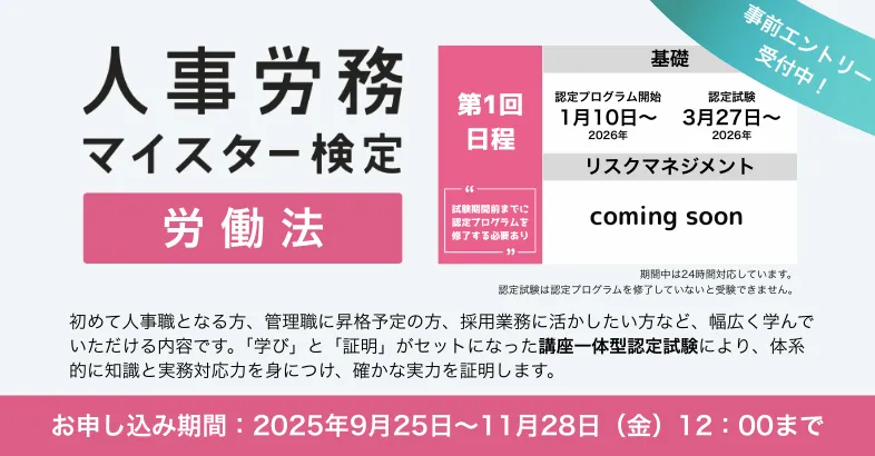 一般社団法人人事労務マイスター協会が、2026年1月より「労働法」講座を追加した「人事労務マイスター検定」を開講します。本講座では、労働法を学ぶ初心者から、実務での判断力を求める人事担当者・マネジメント層を対象に、実務で使える法律知識を体系的に学び、試験を通じてその知識を証明することを目指しています。