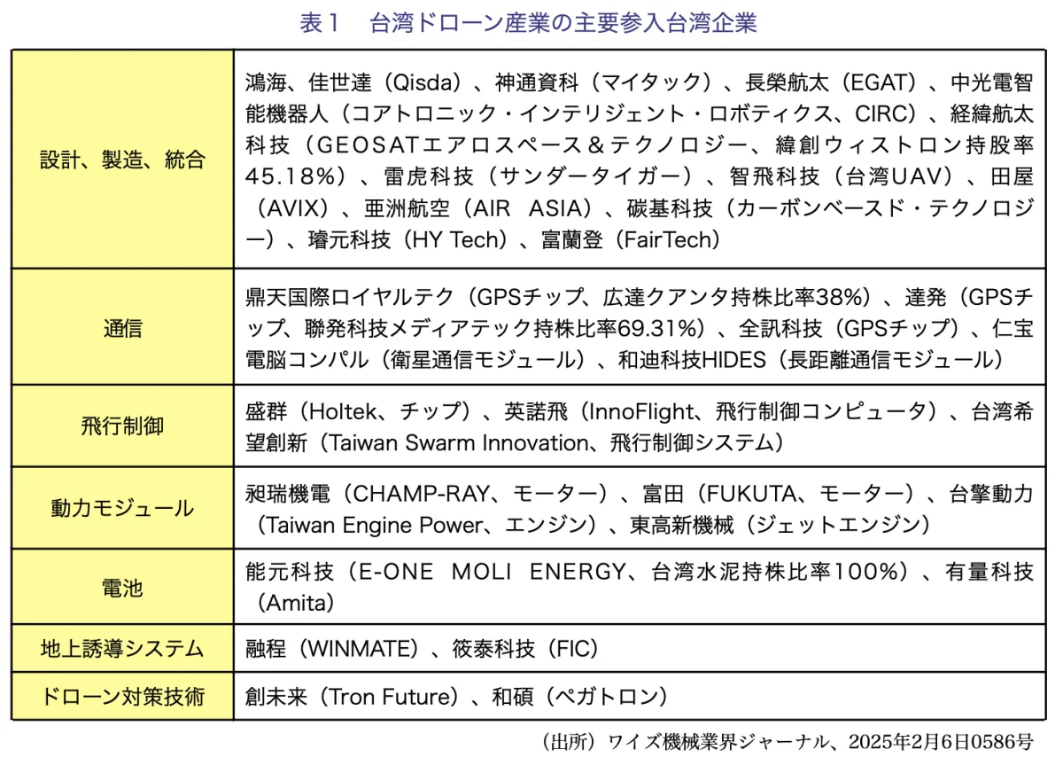 日本企業にとっては、台湾の無人機産業は一方でリスクが伴いながらも、多くの機会を提供しています。特に地上制御システム、通信暗号技術、バッテリー管理、AIソフトウェアの分野では、日本企業が技術連携や共同開発を通じて参入する余地が大きいとされています。