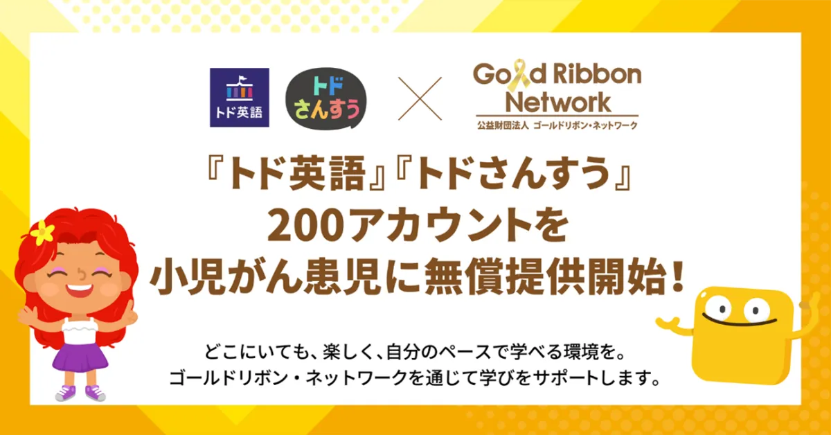Enuma Japan合同会社が、家庭学習アプリ『トド英語』と『トドさんすう』を無償で提供する取り組みを発表しました。これは、小児がんを患う子どもたちとその家族を支援する公益財団法人ゴールドリボン・ネットワークとの連携によるもので、両者の強い想いが結実した結果です。