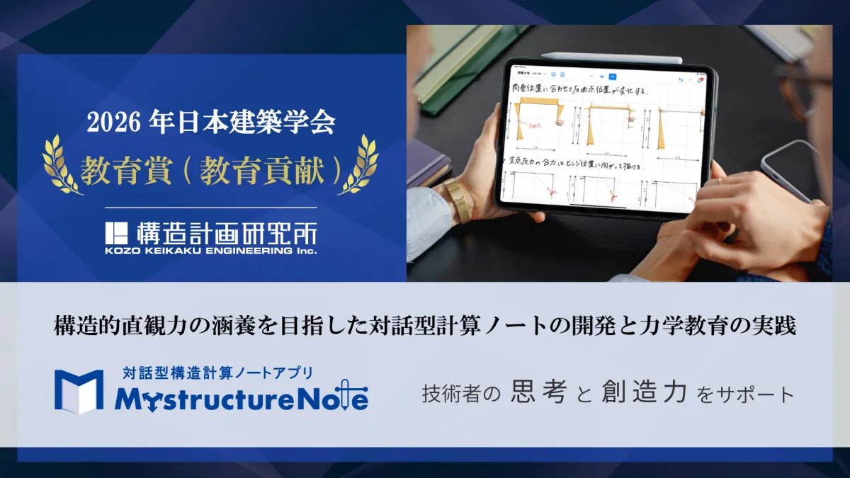 近年、建築設計の現場においては、構造設計の重要性がますます高まっています。その中で、株式会社構造計画研究所が開発した対話型構造計算ノートアプリ「MystructureNote」が、2026年度の「日本建築学会教育賞(教育貢献)」を受賞することとなりました。この受賞は、教育実践を通じて学生たちの構造力学への理解を深める試みが認められた結果です。