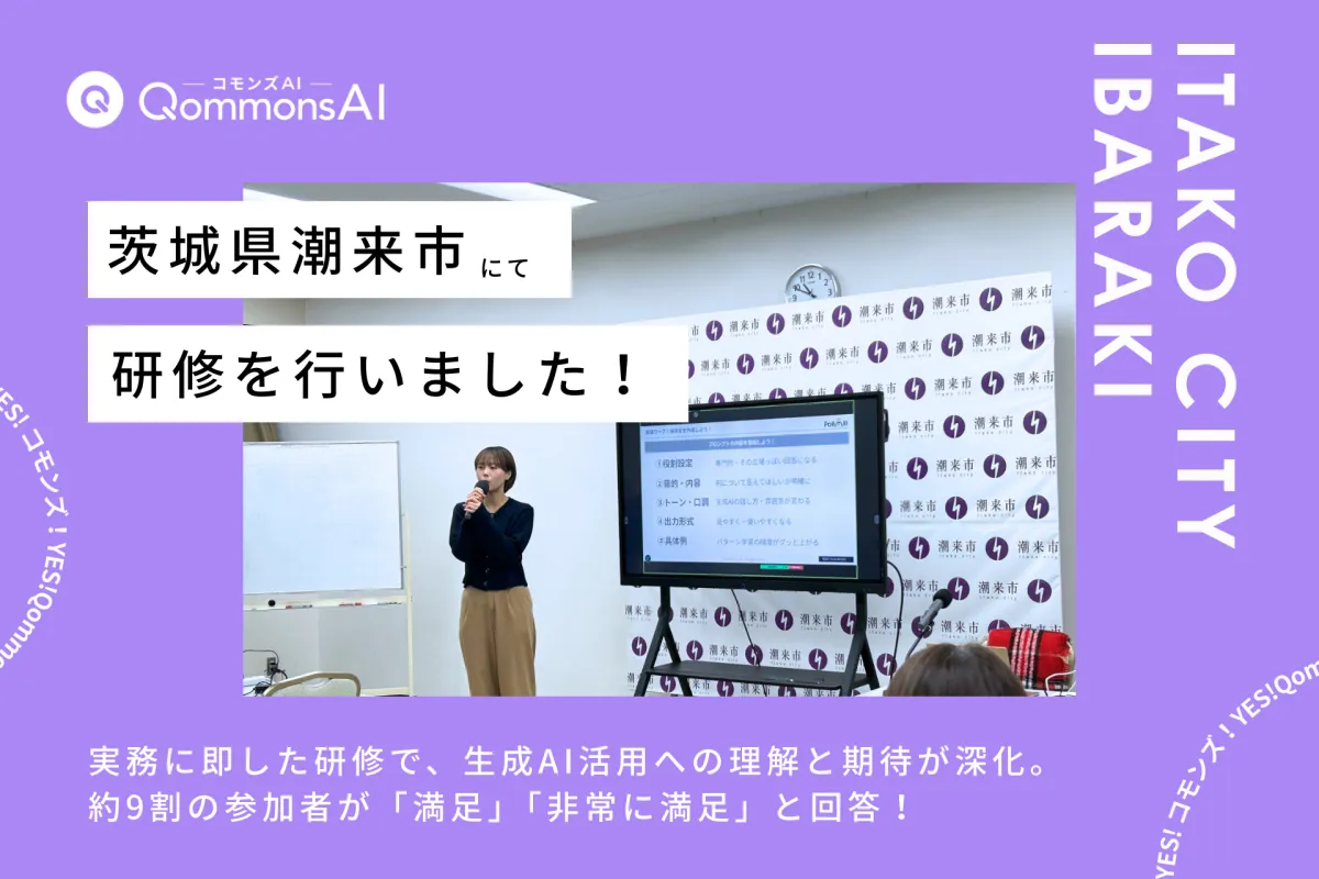 2026年1月21日と22日の2日間にわたり、茨城県潮来市で、Polimill株式会社により生成AI「QommonsAI」の研修が開催されました。約60名の自治体職員が参加し、実務に即した内容を学ぶ貴重な機会となりました。
