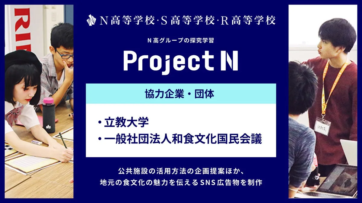 2025年7月から、N高グループは新しいカリキュラムを開始します。このプロジェクトは、立教大学や一般社団法人和食文化国民会議との連携を通じて、公共の場での価値を伝える新たな企画を提案します。具体的には、地域の食文化を活かしたSNS広告素材の制作や、公共施設の活用方法に関する企画提案が含まれています。