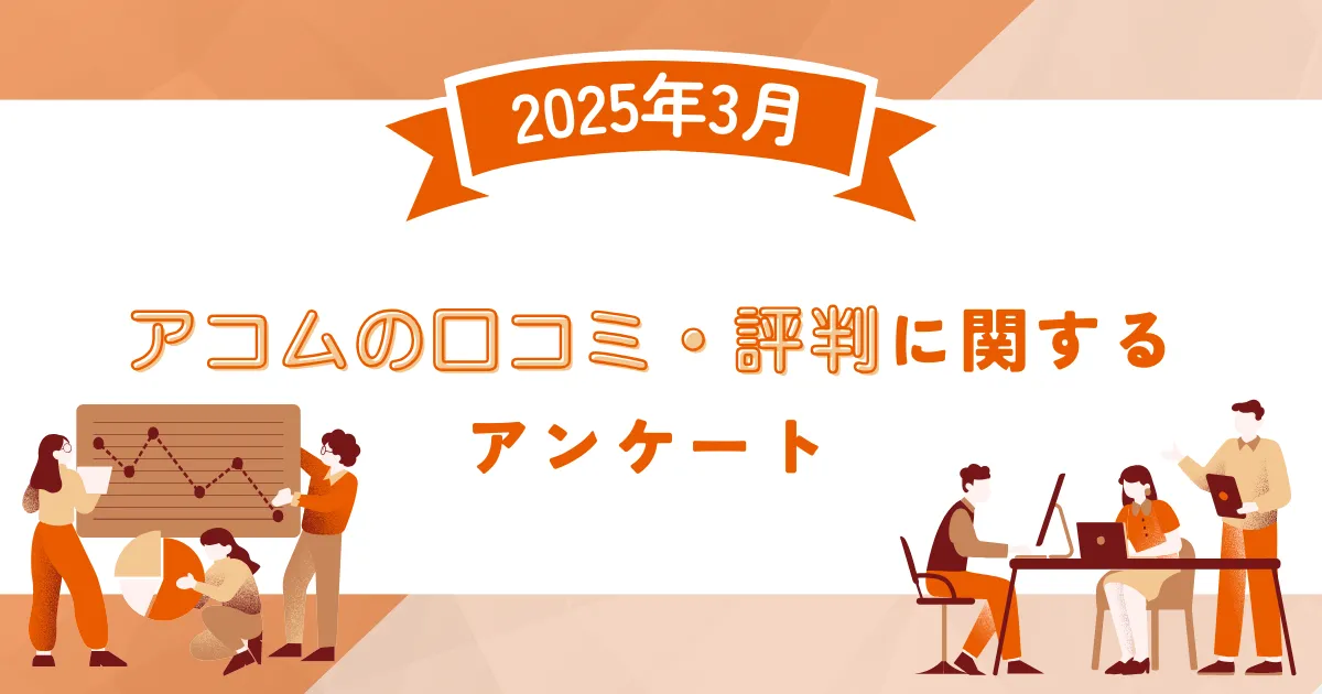 2025年3月に実施されたアンケートによって、アコムに対するユーザーの評価や意見が明らかになりました。本調査はアドバイザーナビ株式会社が行い、インターネット経由で130名の回答を集めました。調査期間は3月6日から9日までの4日間で、結果の分析によってアコムがどのように評価されているのかを詳しく見ていきます。