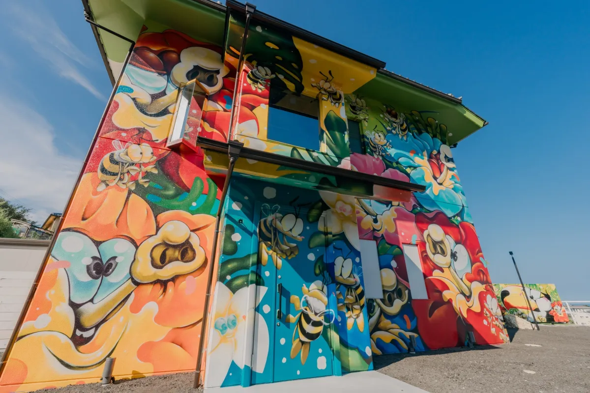 宿泊者は、扉を開けた瞬間に広がる非公開の「サプライズ」を体験することができます。これは、全てのお子様に喜んでもらえるように設計されたもので、一瞬でその場にいるすべての人を魅了します。広島県出身のアーティストKAC氏が手掛けた色鮮やかなスプレーアートが施された空間も印象的で、子どもたちの想像力を掻き立てること間違いなしです。