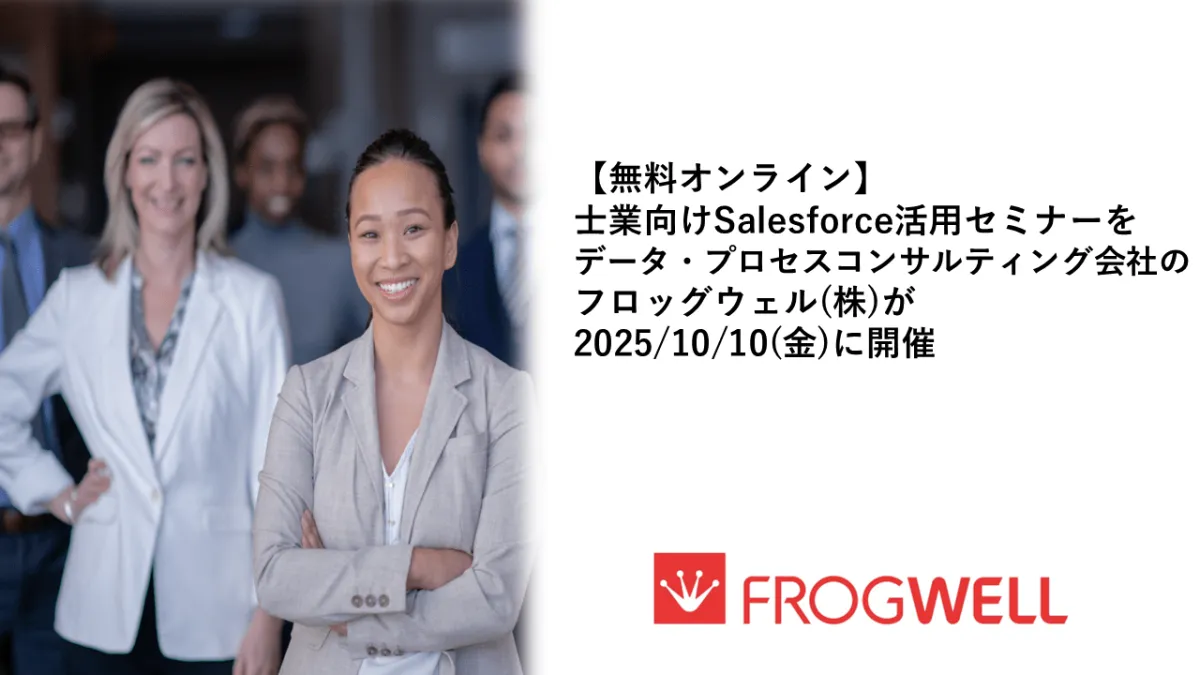 データ・プロセスコンサルティング会社フロッグウェル株式会社が、士業業界向けのSalesforce活用セミナーを2025年10月10日にオンラインで開催します。近年、様々なビジネスでCRMやBIツールの導入が進んでおり、企業は顧客情報や商材購入状況を正確に記録することが求められています。これにより、迅速かつ正確な意思決定が可能となり、業界の競争力を高める要素となっています。