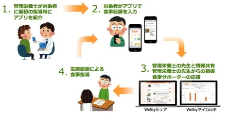 このプロジェクトでは、「Welby食事アルバム」と「Welby食事ノート」を通じて、糖尿病予備群の方々が自分の食事の内容を管理栄養士にリアルタイムで送信できるようになります。これにより、適切な指導を早急に受けることができ、食事の改善が促進されます。スマートフォンアプリを使ったこの新しいアプローチによって、患者は食事をただ記録するだけでなく、専門家からのフィードバックを受けることで、より主体的に健康管理に取り組むことが可能になります。