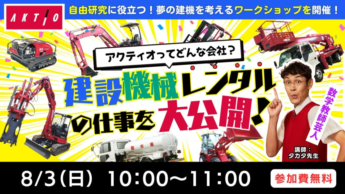 建設機械レンタル業界のリーディングカンパニーである株式会社アクティオが、2025年8月3日(日)に「夏のオンライン自由研究フェス2025」を開催します。このイベントでは、全国各地の小学生を対象に、「アクティオってどんな会社?建設機械レンタルの仕事を大公開」と題されたオンライン授業を行います。参加は無料で、自宅から涼しい部屋で参加できるため、この夏の猛暑対策にも最適です。