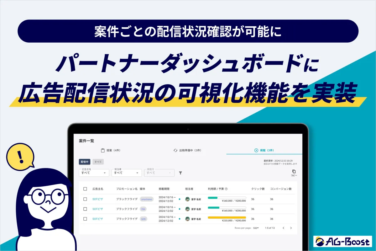 広告業界において、ネット広告の運用業務は多くの課題を抱えています。特に、案件の進捗状況や請求の確認作業が属人的であり、効率化の妨げとなっています。これに対応するために、ソウルドアウト株式会社の子会社であるSO Technologiesが新たに実装したのが、ネット広告仕入・提案・運用支援サービス「AG-Boost」のパートナーダッシュボードにおける「掲載」機能です。