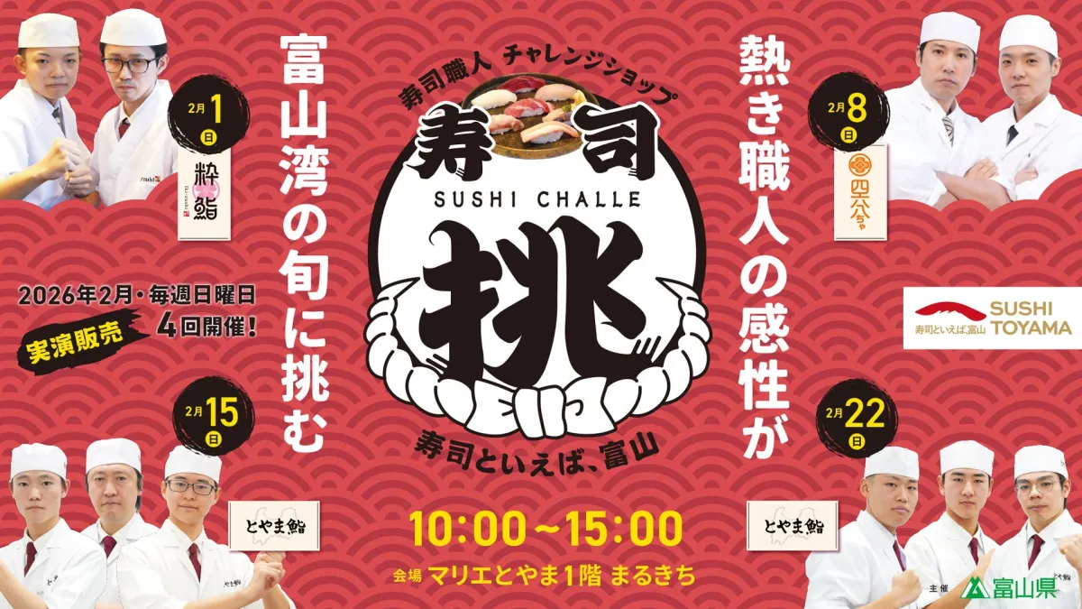 富山県が推進する「寿司といえば、富山」のスローガンのもと、人材育成とブランディング戦略を強化する新たな試みとして、寿司職人チャレンジショップ「寿司挑(すしチャレ)」が誕生しました。このイベントは、県内外の若手寿司職人が集まり、各自の技術を披露しながら、寿司の魅力を広めることを目的としています。