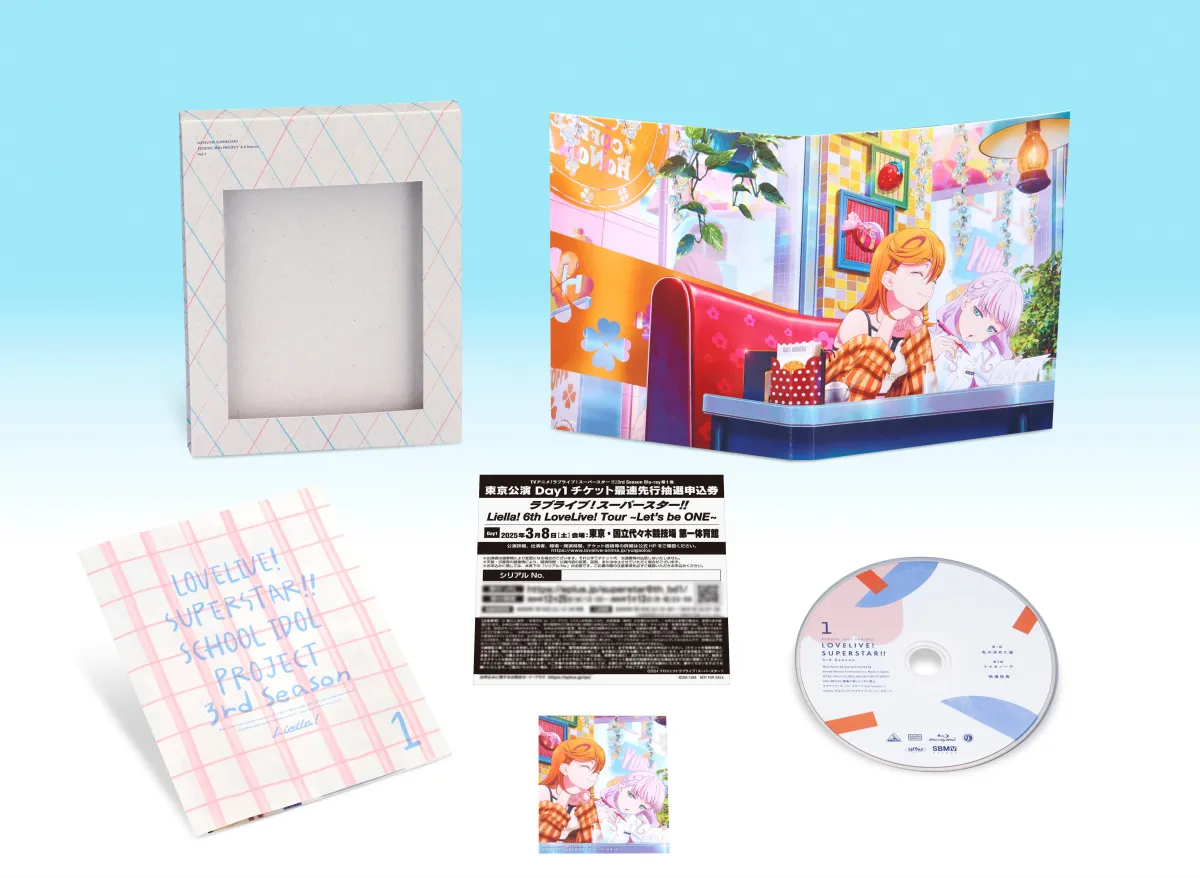 このBDには、特別付録としてさまざまな魅力的な特典が同梱されています。まず、「ラブライブ!スーパースター!! Liella! 6th LoveLive! Tour ~Let’s be ONE~」東京公演Day1チケットの最速先行抽選申込券に加え、4ページのブックレットとジャケットシールが付いてきます。また、特別映像として、愛知公演のライブパートや新規撮り下ろし映像「Liella!のドコいく?3rd Season Part.1」なども収められています。これにより、Blu-rayは単なる視聴用だけでなく、コレクターズアイテムとしての価値も高まっています。