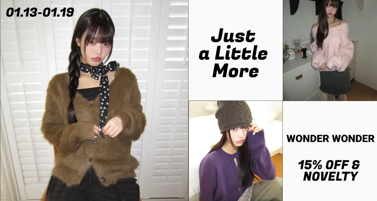 アジアファッションプラットフォーム「60%(シックスティーパーセント)」が、韓国発の人気ブランド「WONDER WONDER(ワンダーワンダー)」のイベントを開催します。このイベントは2026年1月13日(火)から始まり、1月19日(月)までの期間中で、全商品が15%OFFで購入できる特別セールを実施します。さらに、5,000円以上のお買い上げで「マフラー」がもらえるという嬉しい特典も用意されています。
