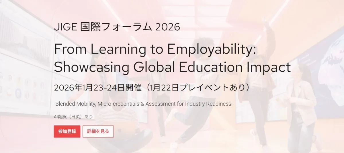 JV-Campus(Japan Virtual Campus)は、平成の風を感じさせるフレッシュな教育プラットフォームとして注目を集めています。このたび、84の国内外の大学や企業、団体が連携し、次世代の高等教育を支援するためのワークショップを、JIGE国際フォーラム2026で開催します。
