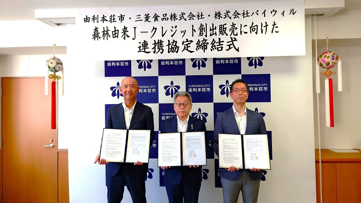 2025年6月23日、秋田県由利本荘市で三菱食品株式会社と株式会社バイウィルが連携協定を結びました。この協定は、J-クレジットを活用してカーボンニュートラルを実現することを目的としています。