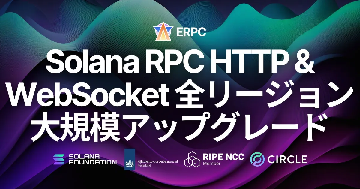 ERPCが、SolanaのRPCエンドポイント全リージョンに対して大規模なアップグレードを実施しました。このアップグレードは、Amsterdam、Frankfurt、London、New York、Chicago、Tokyo、Singaporeといった主要な都市で行われ、ネットワークの効率化と安定性を向上させることを目的としています。また、これにより、過負荷時の問題であったHTTP 500エラーの発生も大幅に減少しています。