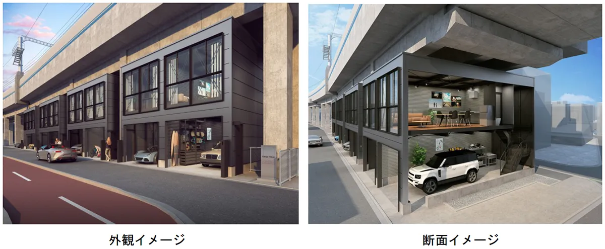 新たに整備される「ガレージハウス」は、屋内外での使い方が自由な空間です。愛好者向けの車やバイクのガレージをはじめ、セカンドハウスやオフィス、サービス店舗、趣味の部屋まで、さまざまな活用方法が可能です。まさに“秘密基地”として、街の中に新しい生活の場を提供します。