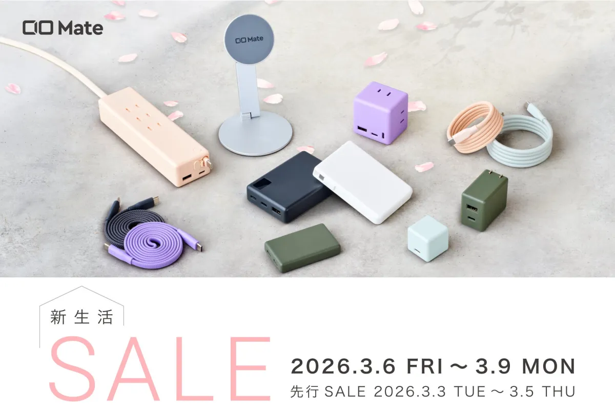 セールは「先行セール」と「新生活セール」の2つに分かれており、先行セールは2026年3月3日から5日まで行われます。CIOはこの機会に充電器やモバイルバッテリー、ケーブル、スマホスタンドなど、日常生活に欠かせないガジェットが揃っているのも嬉しいポイントです。