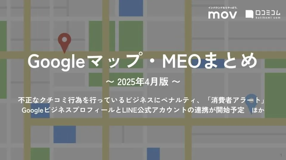 株式会社movが運営する口コミコムが、2025年4月版の「Googleマップ・MEOまとめ」を発表しました。このレポートでは、GoogleマップやGoogleビジネスプロフィールに関する最新の情報を網羅しています。