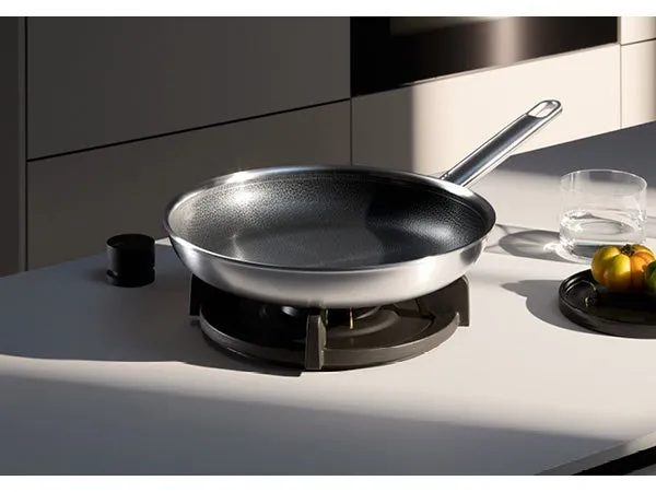 このフライパンは、上質なステンレスマット仕上げと洗練されたハンドルデザインが特徴です。調理中でも美しい外観を保ち、その存在感はキッチンを一層引き立てます。使っているときも、整理しているときも美しい佇まいが魅力的です。