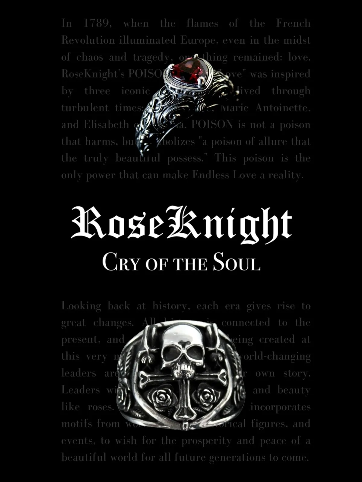 フランス革命の中で愛を貫いた三人の女性たちからインスパイアを受け、その「毒」を「心を奮い立たせ、美を覚醒させ、愛を永遠へと導く力」という新しい視点で定義しています。