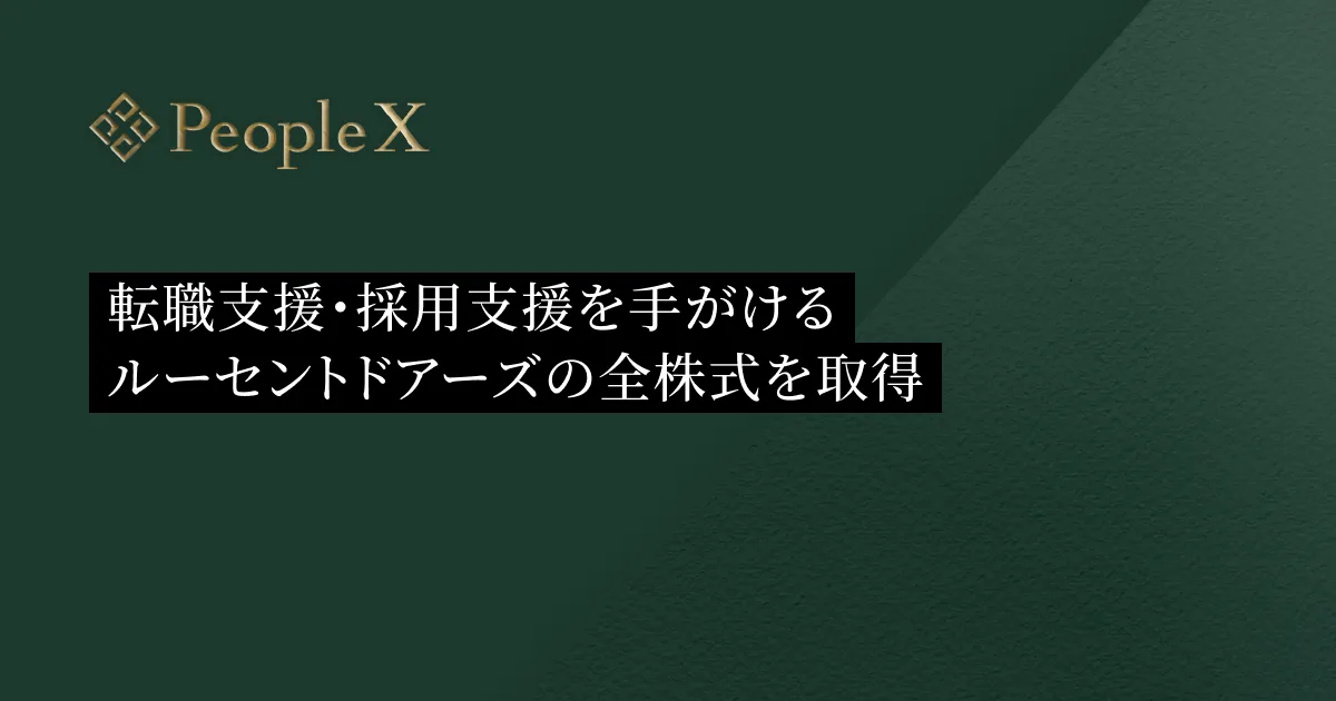 株式会社PeopleX(本社:東京都新宿区、CEO:橘 大地)は、転職支援および採用支援を行っているルーセントドアーズ株式会社(東京都港区、代表取締役:黒田 真行)の全株式を取得し、子会社化したことを発表しました。