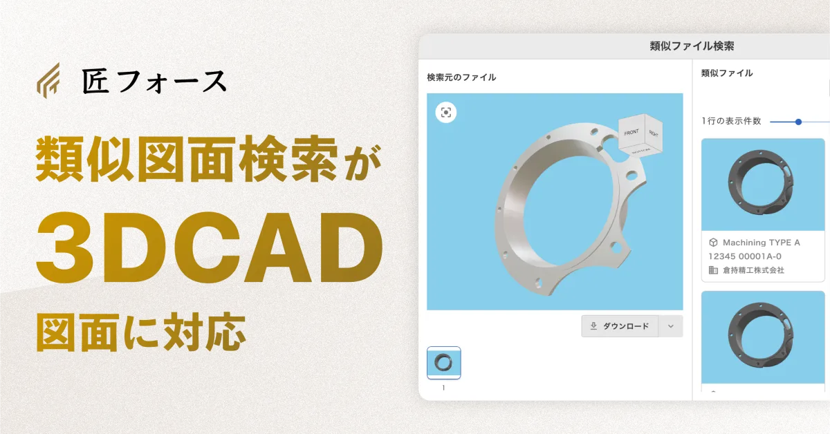 製造業のデジタルトランスフォーメーション(DX)が進む中、自動車産業やOA業界では3D CADツールの使用が一般化してきました。しかし、2D CADのデータも未だ多く残されており、製造業の現場では両者が入り混じった状況です。そんな中、匠技研工業株式会社が提供するAIを駆使した見積・図面管理システム「匠フォース」が、類似図面検索機能を3D CAD図面に対応させたことが注目されています。