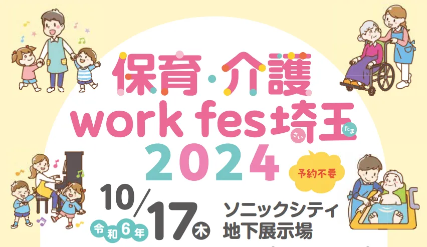 埼玉県では、保育・介護分野の人材確保に向けた取り組みとして、2024年10月17日(木)に「保育・介護ワークフェス2024」が開催されます。このイベントでは、保育士資格を持つ方や介護経験者、現役学生など、保育や介護の職に就きたいと考える方々が集い、新しいキャリアを築く機会が提供されます。