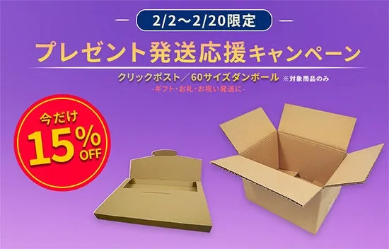 キャンペーン1:クリックポスト・60サイズダンボール 15%オフセール