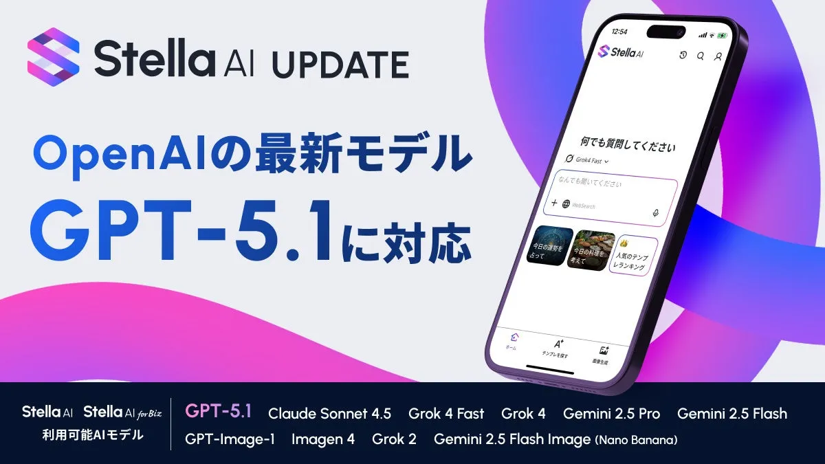 株式会社SUPERNOVAが、その生成AIサービス『Stella AI』にOpenAI社の最新AIモデル『GPT-5.1』の導入を発表しました。この新しいモデルは、2025年11月14日から利用可能となり、ビジネスシーンにおける業務の効率化に貢献します。