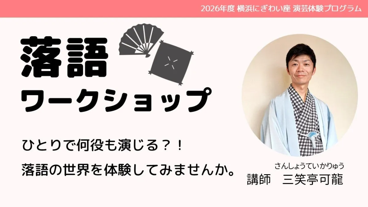 このワークショップの講師には、経験豊富な落語家、三笑亭可龍(さんしょうていかりゅう)が登場します。彼は1996年に九代目三笑亭可楽に入門し、2010年に真打に昇進。現在も横浜にぎわい座での公演を行い、子ども向けのプログラムにも多数参加しています。