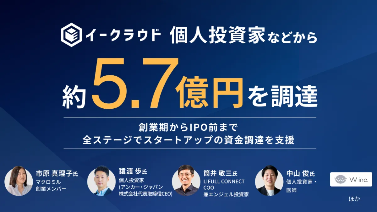 株式会社イークラウドは、約5.7億円の資金を調達したことを発表しました。この資金調達はエクイティファイナンスとデッドファイナンスを併せたもので、出資者には数多くの個人投資家やW fundが名を連ねています。これにより、同社はスタートアップ企業と個人投資家を結ぶ新しいプラットフォームの実現に向けた一歩を踏み出しました。