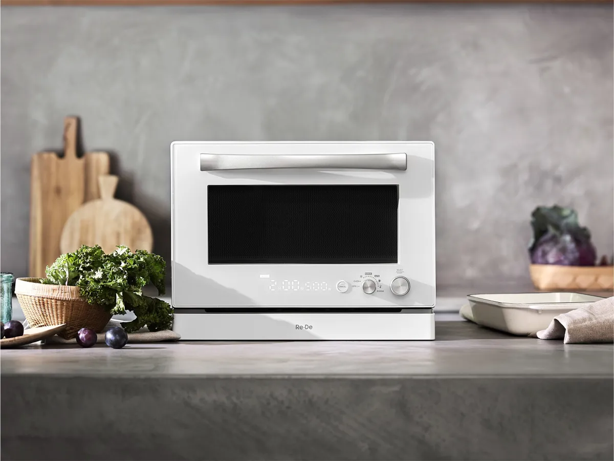 「Re・De Range」は、コンパクトな20Lサイズでありながら、豊富な機能を搭載しています。外形にはオーブンレンジとしての高級感を備え、シームレスなデザインが美しいキッチンのインテリアに溶け込みます。収納性とデザイン性を両立させたこの製品は、キッチンスペースをスマートに活用します。