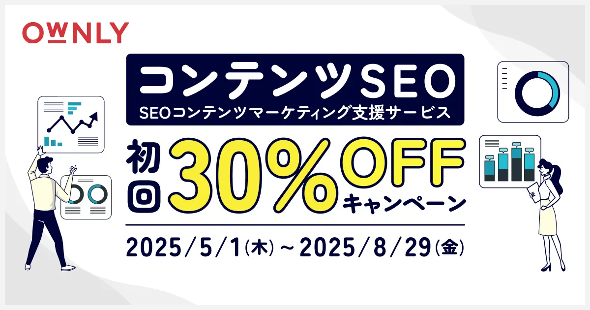 このキャンペーンは、2025年5月1日から2025年8月29日までの期間、スマートシェアのコンテンツSEOサービスを初めて利用する企業に対して適応されます。具体的には、初回1カ月分の月額料金を通常料金から30%割引。条件として、最低3カ月の契約をすることで適用されるため、自社のニーズに応じて長期的な活動を計画することが求められます。また、初期費用が発生しますので、その点もご留意ください。