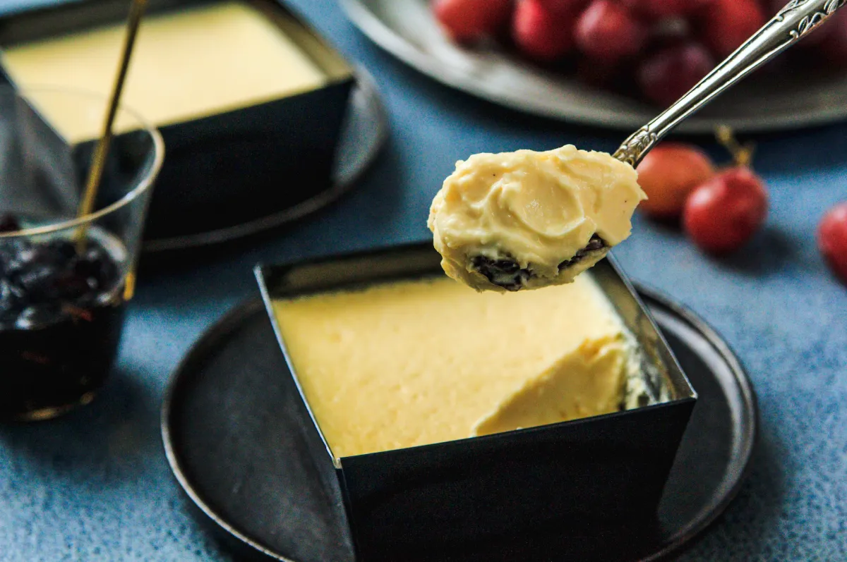 このチーズケーキは、濃厚な北海道産チーズにジューシーなラムレーズンを組み合わせた、大人のための特別な逸品です。ラムレーズンは、大阪のアトリエで丁寧に漬け込まれ、ひと噛みごとに弾ける酸味と芳醇な香りが広がります。味わい深いラム酒も生地に練り込まれており、香り高く焼き上げられています。