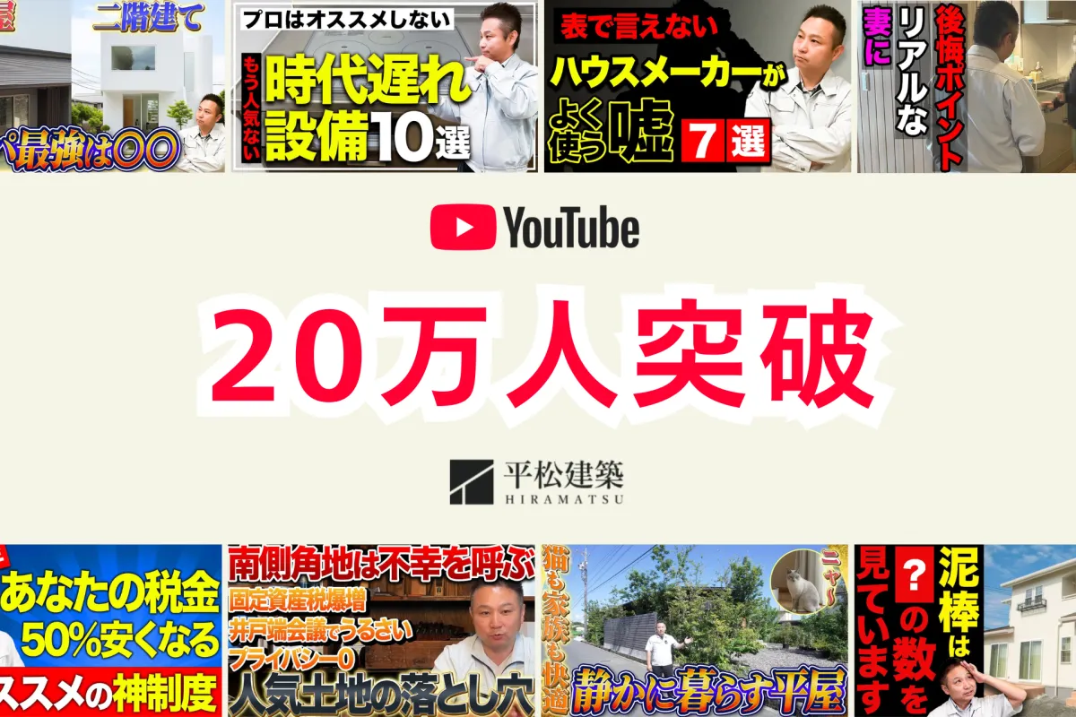 平松建築株式会社が運営するYouTubeチャンネル「職人社長の家づくり工務店」が、工務店として初めて登録者数20万人を達成したことを発表しました。これは、「100年長持ちする資産価値の高い家づくり」を目指す同社が、9年間にわたって培ってきた努力の成果でもあります。
