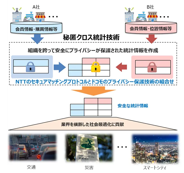 「秘匿クロス統計技術」は、NTTグループの次世代ICT基盤構想「IOWN®」の重要な技術の一つです。この技術は、データを保護した状態で安全な統計情報を作成できることで、各種組織が持つ情報を無駄なく活用できます。