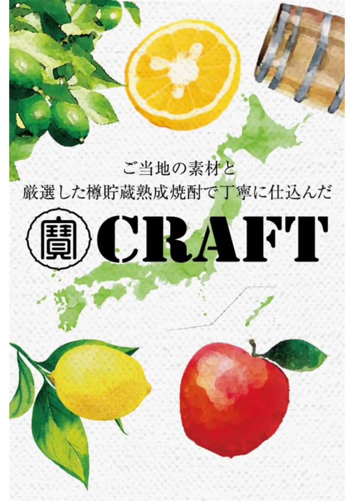 「寶CRAFT」は、厳選された樽貯蔵熟成焼酎に日本各地の個性豊かなご当地素材を組み合わせた「ひとてま造り」製法で作られている。この方式により、地域ごとの個性がしっかりと反映されており、消費者はその土地ならではの味わいを楽しむことができる。